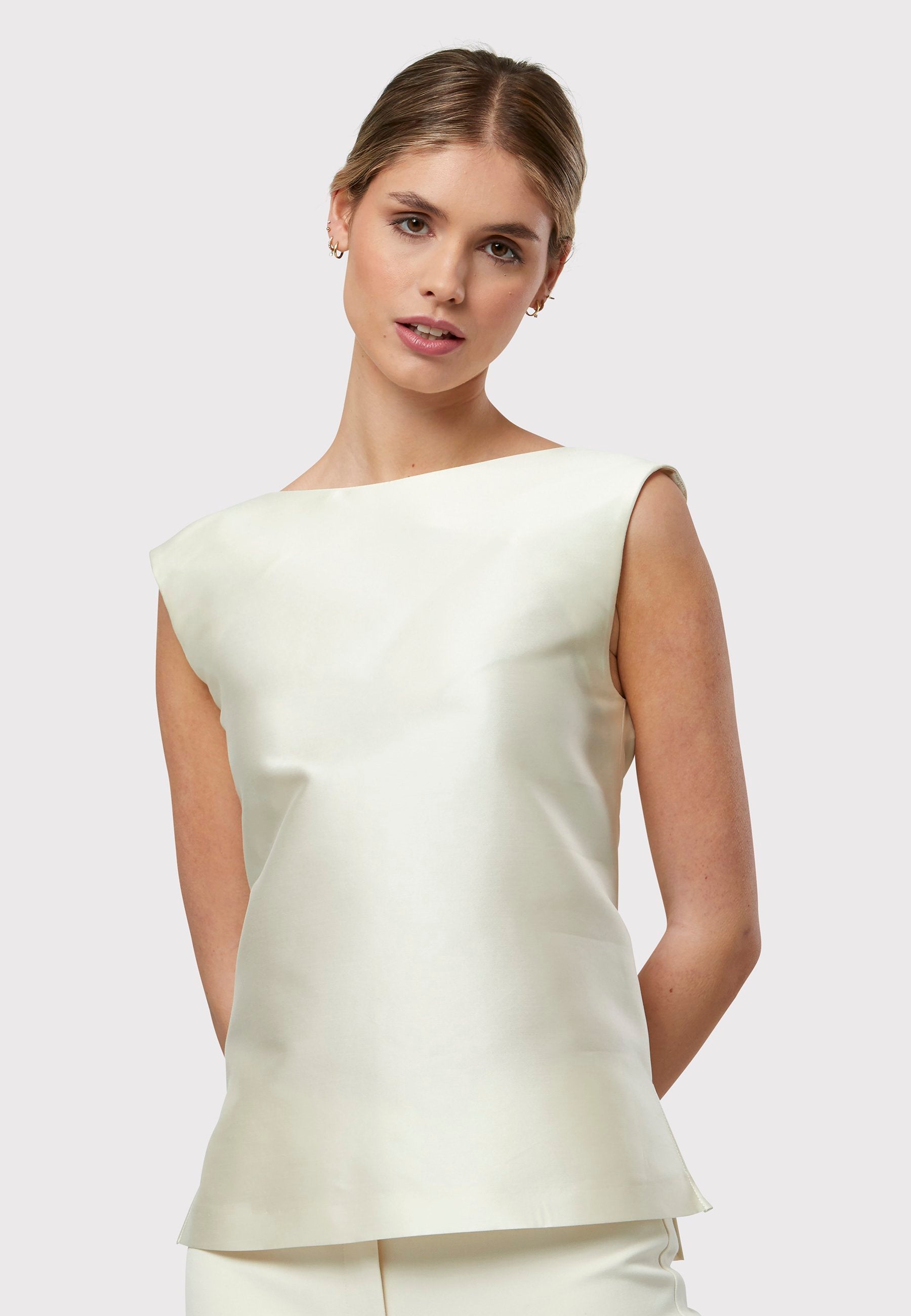 A good ivory shell solves half your wardrobe puzzles. Stella brings a clean sleeveless shape with small side slits and a subtle sheen that reads considered under blazers or on its own with a wide-leg. It is the sort of foundation piece that earns repeat wears.