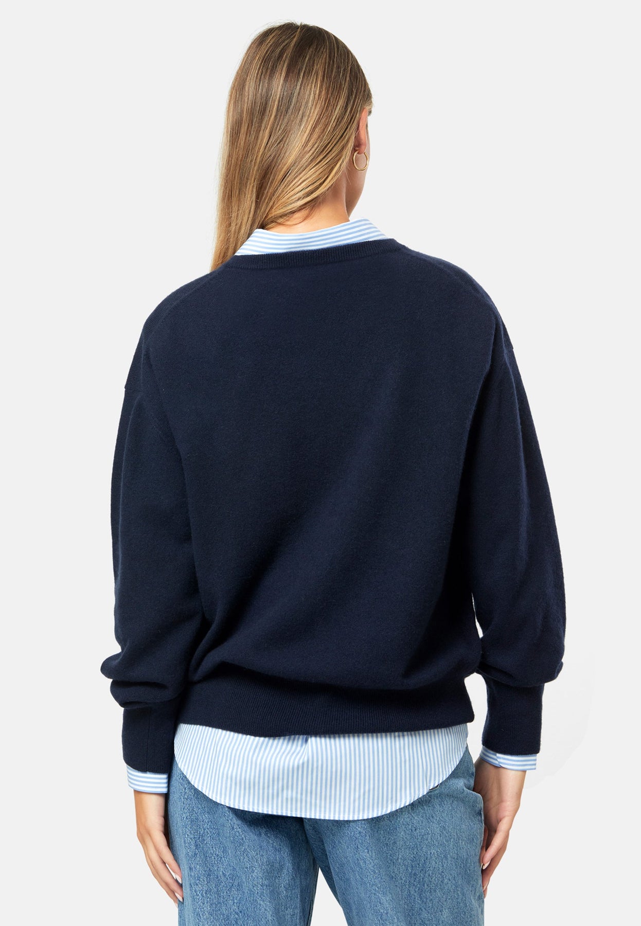 Spun from pure cashmere with a cloud-soft, feather-light handle, it features a neat crew neckline, subtly dropped shoulders and an easy, hip-skimming fit finished with fine rib trims. Effortless on its own with denim, smart layered over a shirt and suiting, and polished with the matching scarf.