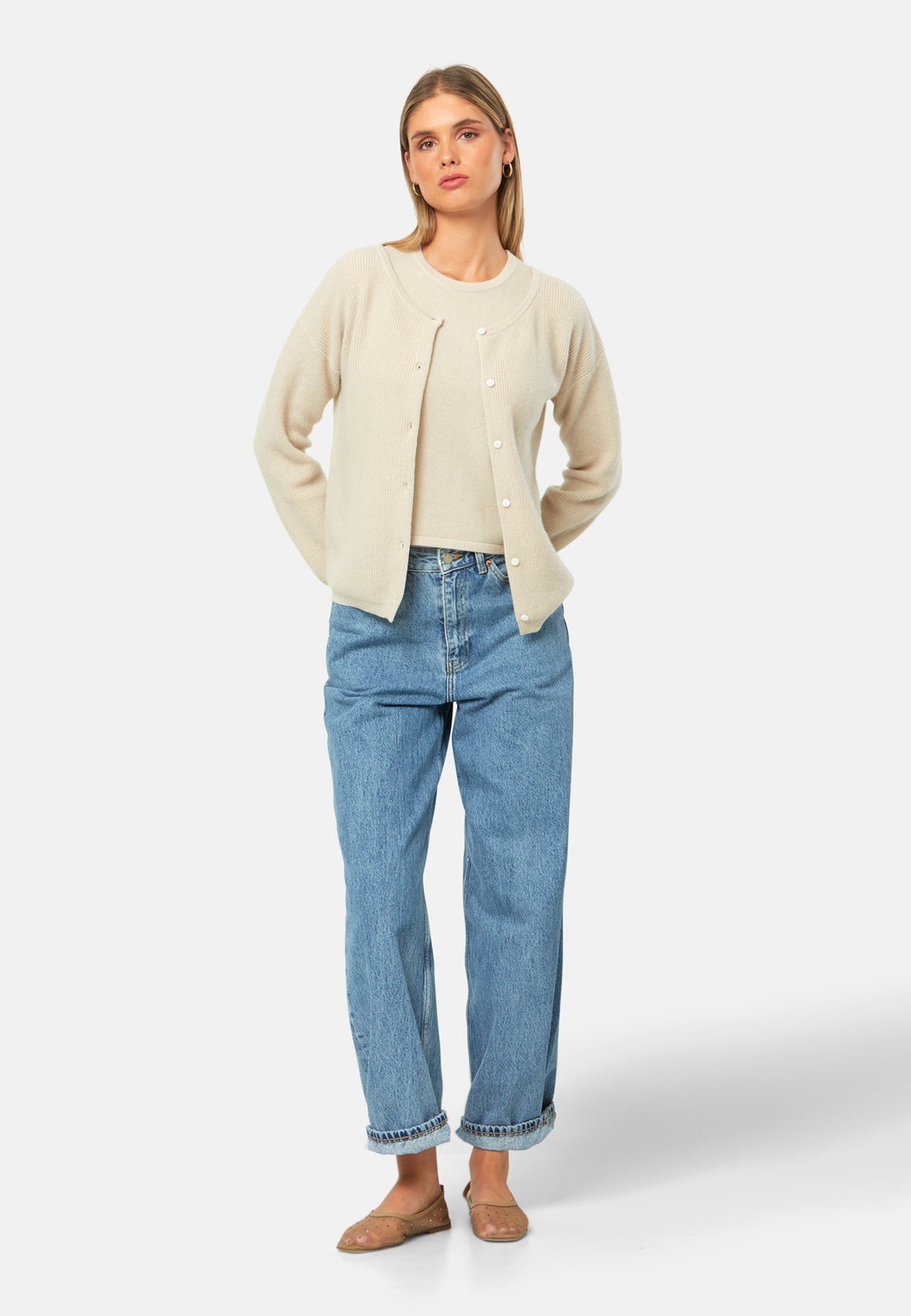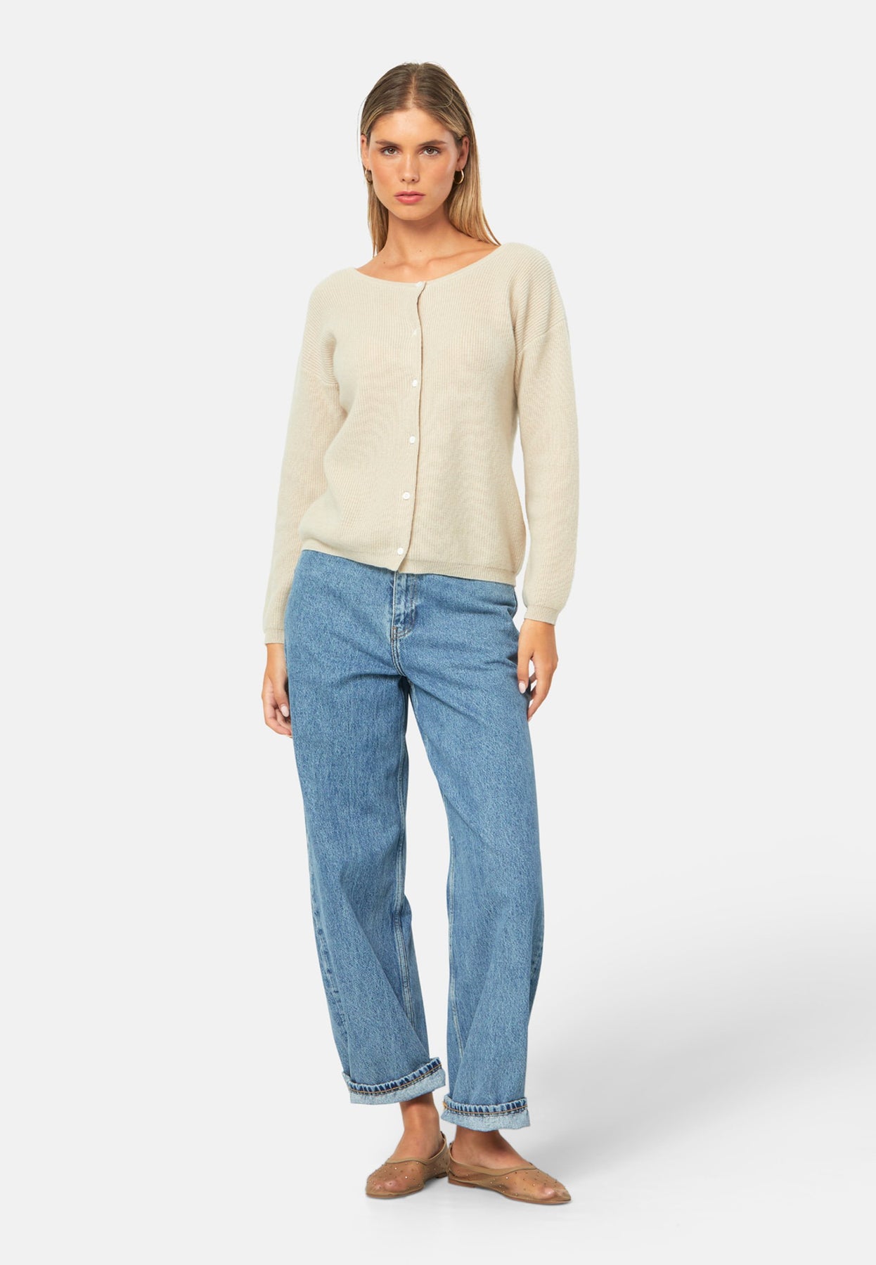 A versatile, reversible cardigan you can wear buttoned at the front or back, or pair with the matching Marlena top. Spun from pure cashmere with a plush, cloud-soft handle, it features a neat crew neckline, dropped shoulders and an easy, hip-skimming fit finished with fine rib trims.