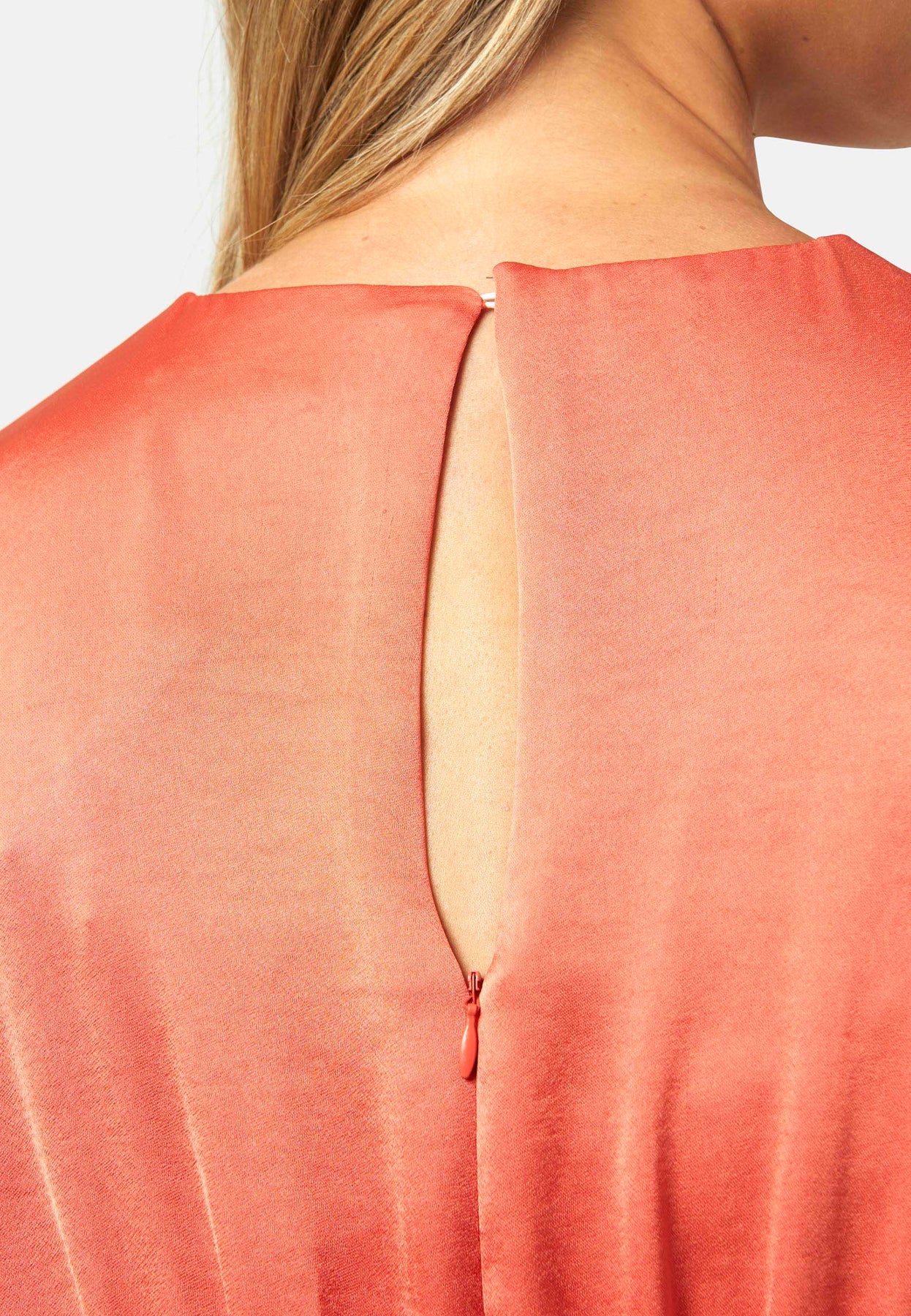 Featuring dropped sleeves, a gathered back waist seam and a side slit for ease of movement. The back is finished with a keyhole detail and button closure.