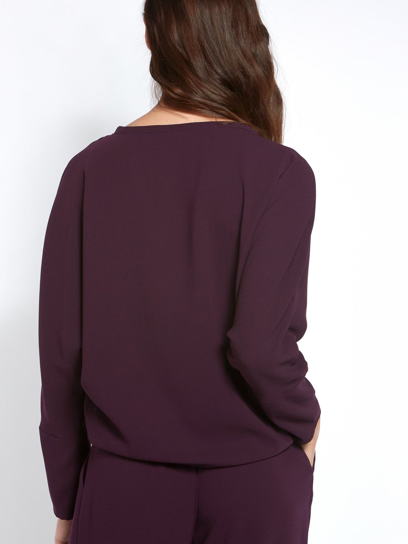 Crewneck, relaxed fit sweatshirt. A sporty silhouette in a luxe satin back crepe. Featuring an elasticated ribbed hem, dropped shoulder and full length sleeve . This piece team perfectly with our Charlize palazzo or out tapered Ann pant. Clothes for how we live today!