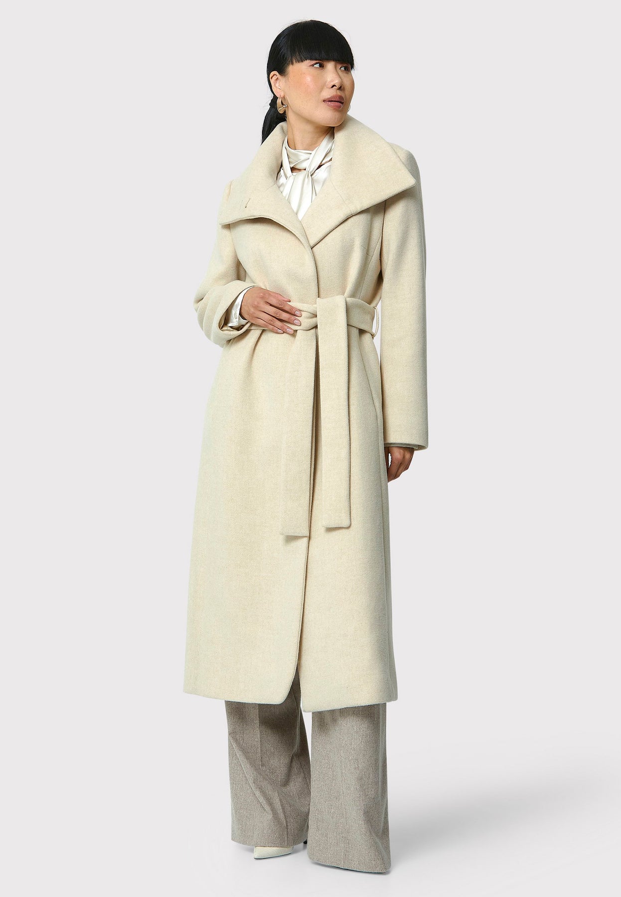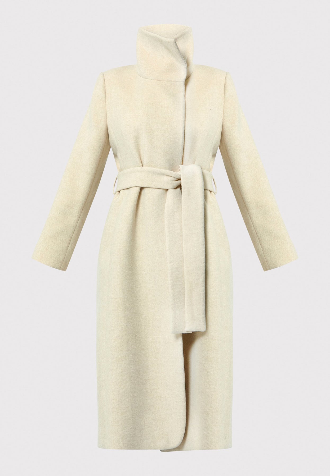 Stay warm and stylish with the Hazel Winter White Coat. Crafted from a luxurious wool blend melton, this coat features a large funnel which falls to a shawl collar and a belted waist for a flattering silhouette. Pair it with tailored trousers or a chic dress for a sophisticated winter look.
