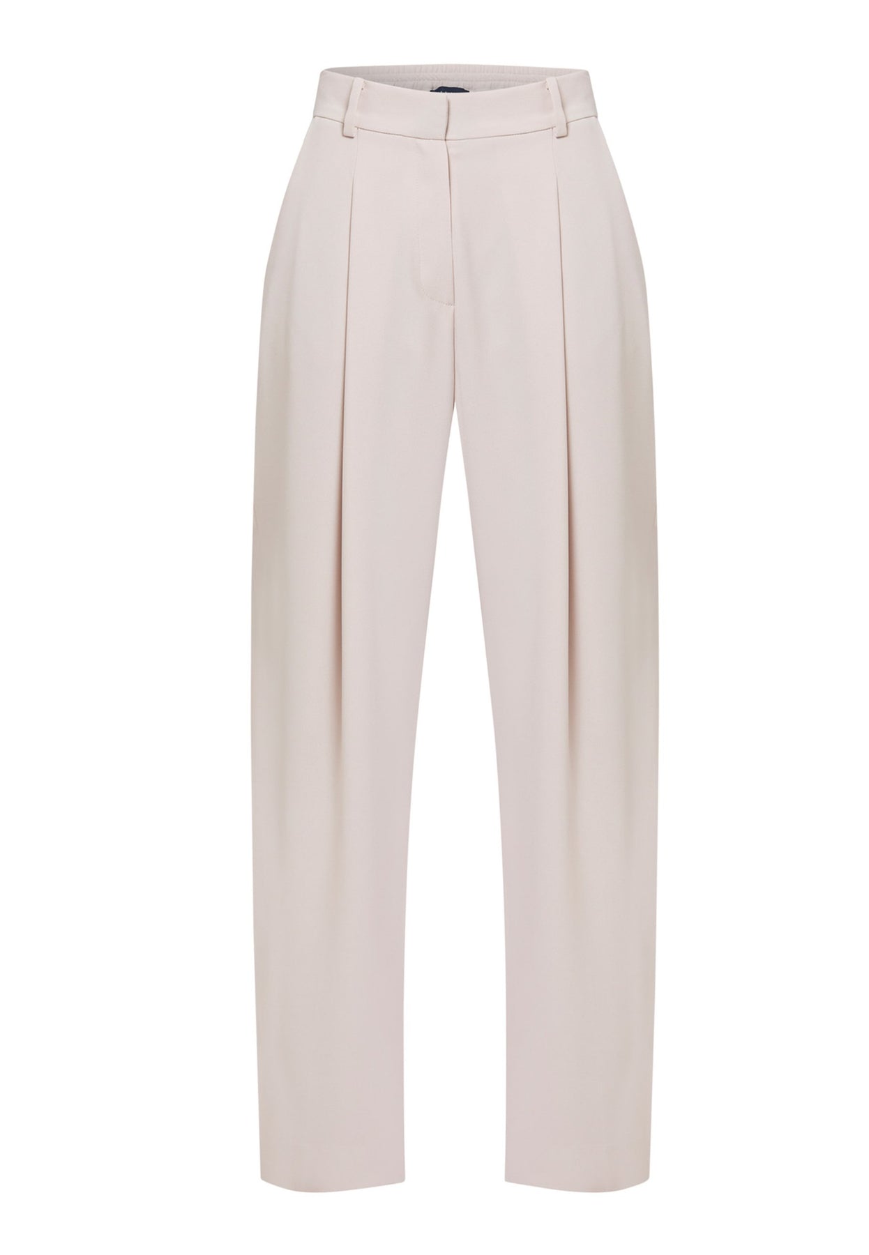Lyra, the modern wide-leg trouser. Tailored with a natural waist, soft front pleats and sharp pressed creases. Full-length and fluid for an elongating line, with side pockets, belt loops and neat back welt pockets. Wear with the Laura blazer for the coordinating suit, or dress up with the Berna Natural Pearl.
