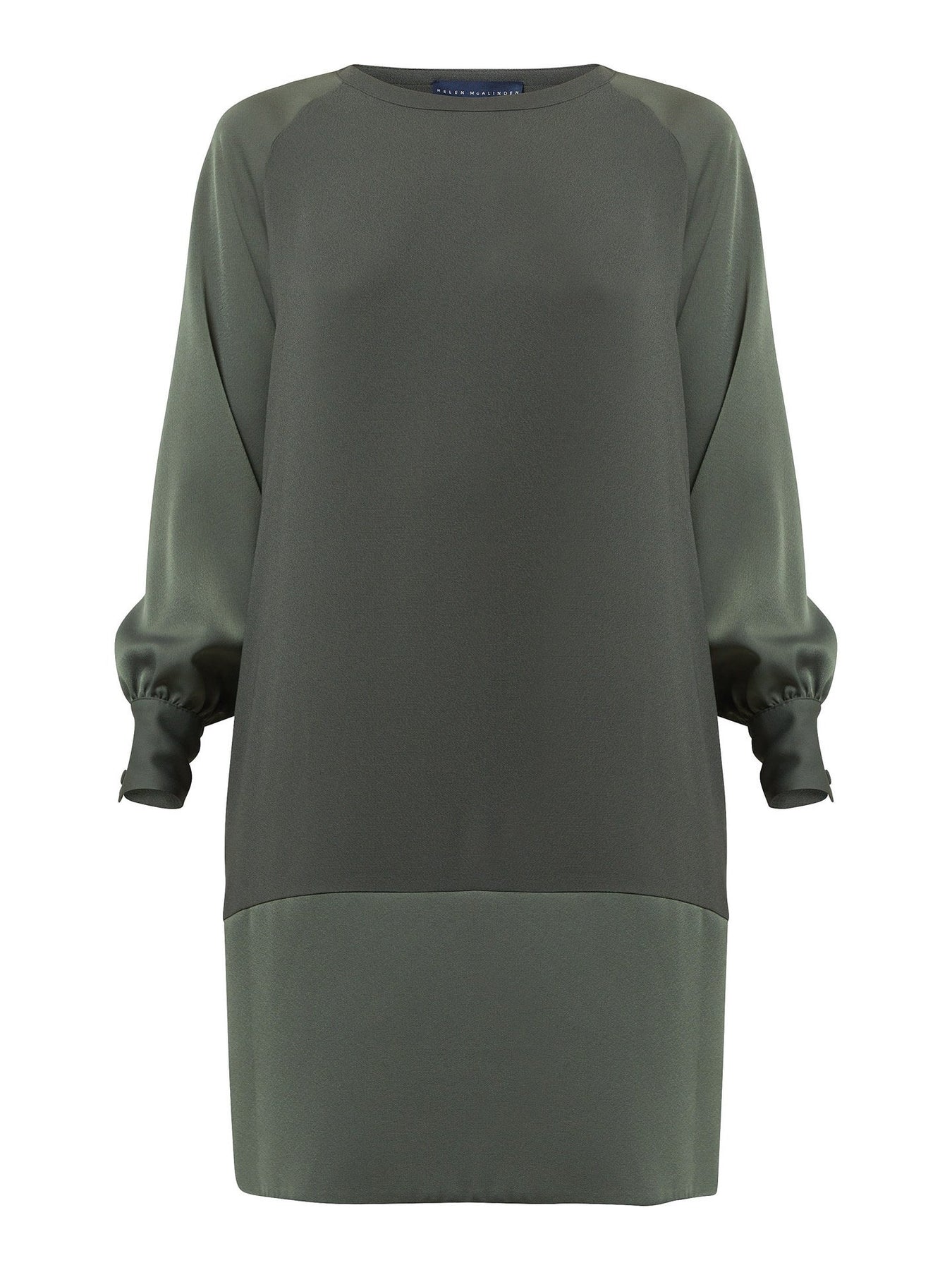 Introducing Sarah, a chic and effortlessly stylish shift dress that brings a fresh perspective to occasion wear. Crafted from luxurious olive satin back crepe, it offers a simple and easy-fit silhouette. The satin raglan sleeves add a touch of sophistication, while the deep satin band at the hem enhances the overall elegance. With convenient side seam pockets, Sarah provides both comfort and functionality. Embrace the versatility and timeless appeal of this dress, perfect for various occasions.